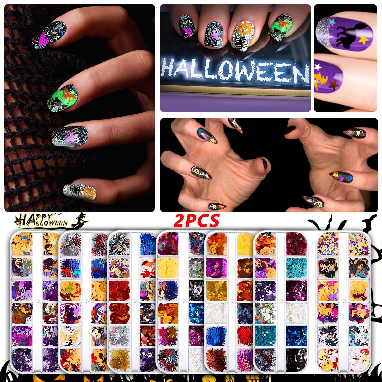 Xiaojmake 2pcs Halloween Nail Art Flash Sequins Skeleton Spider Pumpkin Bat Ghost Witch Halloween Diy Nail Art Party Supplies Walmart Com