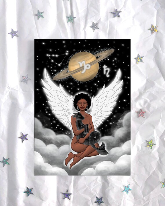 Capricorn Angel Art Print Black Girl Woman Black Beauty Etsy